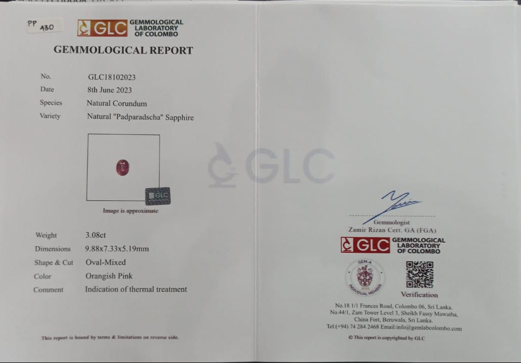 Padparadscha 3.08ct Orangish Pink Oval (Heated)