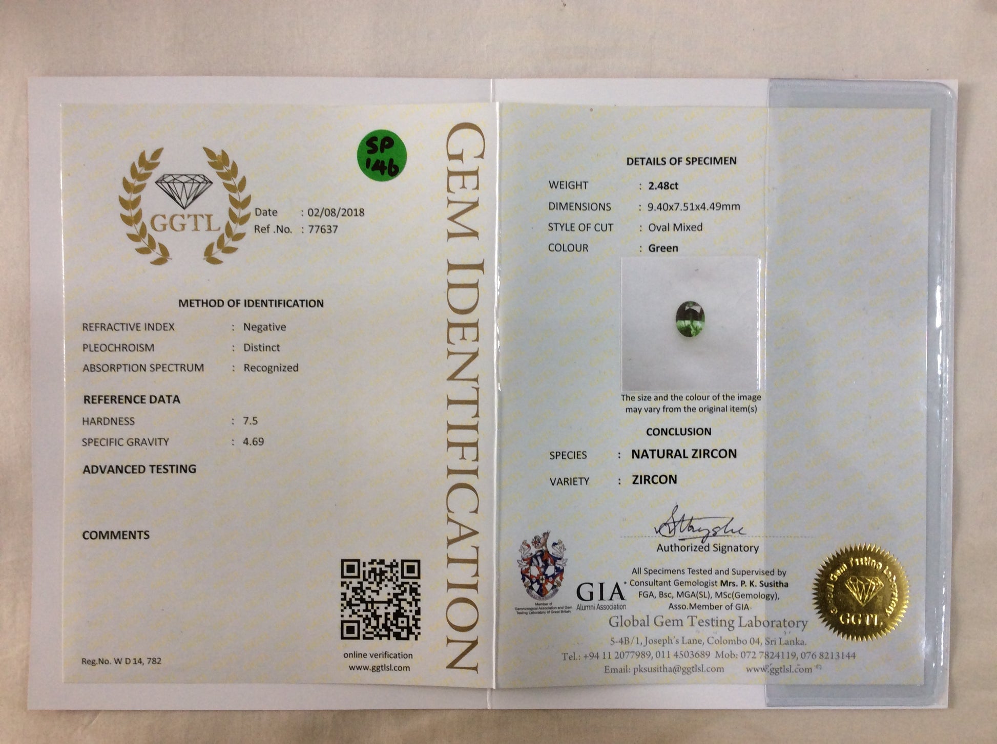 Zircon 2.48ct Green Oval Cabochon EC