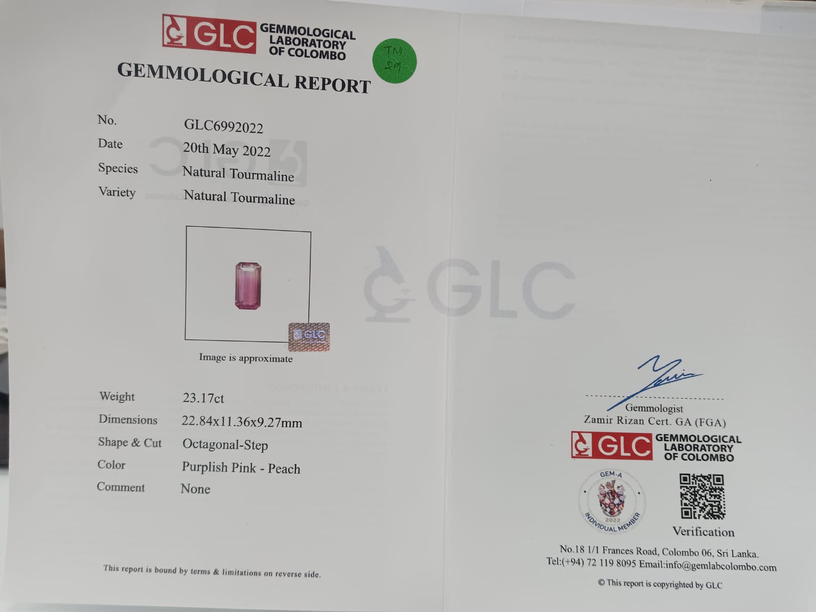 23.17ct Octagon Cut Purple Peach Tourmaline